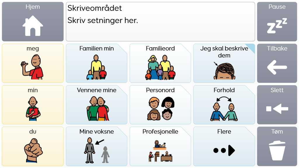 Når du starter Voco Chat første gangen får du valget mellom «Barn» eller «Ungdom og voksen» og vokabularet vil tilpasse seg deretter.