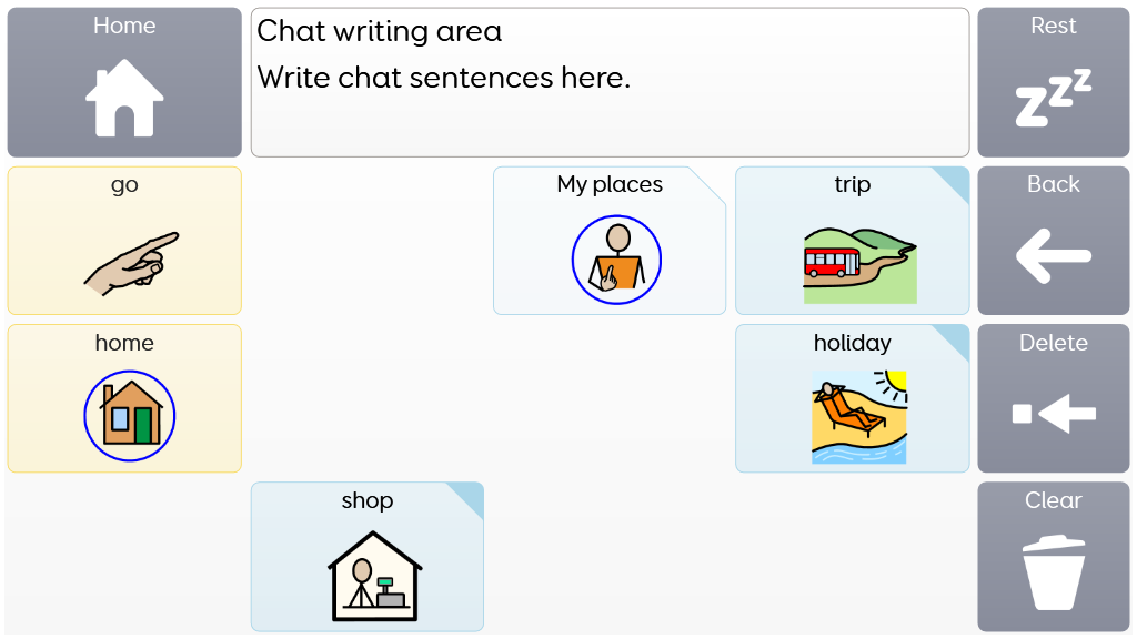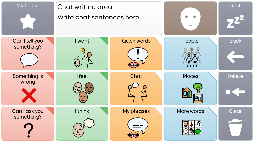Voco Chat is a low-cell count symbol vocabulary, designed to enable users to communicate for a wide range of reasons. Message pathways, with built-in jumps and carefully selected vocabulary, provide a supported approach to language. The grid set includes resources for supporting communication and emotional wellbeing, with apps such as Symoji and Camera to support interaction and engagement.