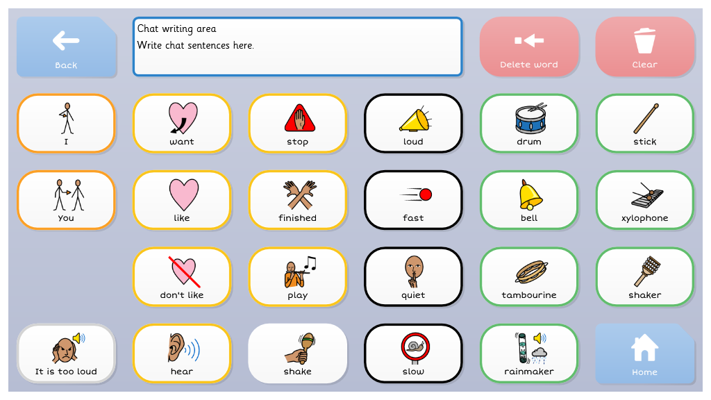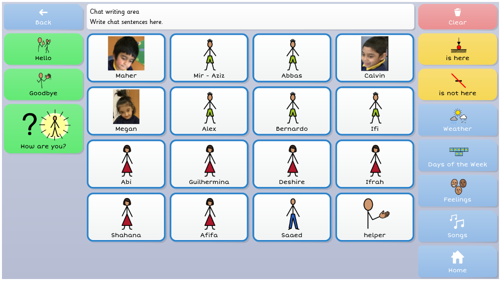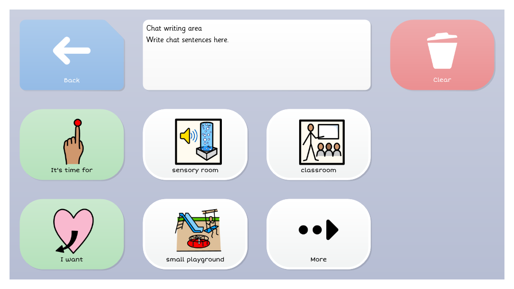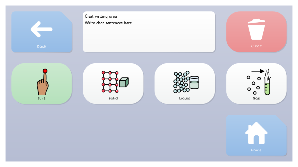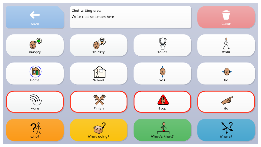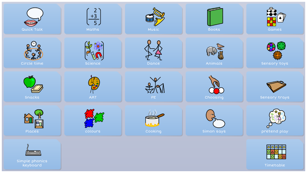 For users who may be familiar with topic based vocabulary, and able to combine two or more selections, Symbol Talker C gives access to core vocabulary that is relevant to each topic. Smart Grammar also supports users to develop their ability to form more complex sentences.