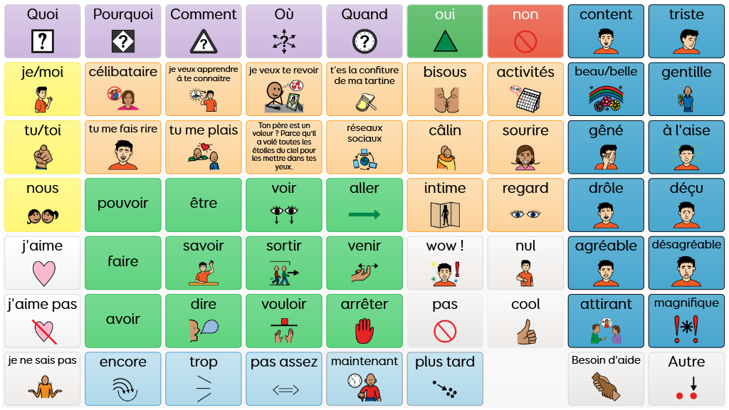 Tableau de communication créer dans le cadre d'une formation pour communiquer lors d'un rencard.