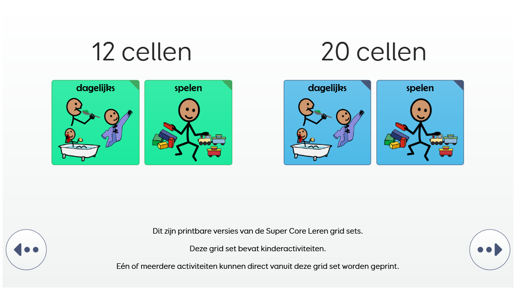 De SuperCore LeerGrids bieden een progressie naar de volledige SuperCore vocabulaire, en bieden een kans om het zelfvertrouwen bij het gebruik van OC op te bouwen. De LeerGrids bevatten alle dagelijkse, speel- en ontspanningsactiviteiten vocabulaire van SuperCore. Daarnaast bevat het een versimpelde kernvocabulaire met 12 of 20 cellen. v2.1