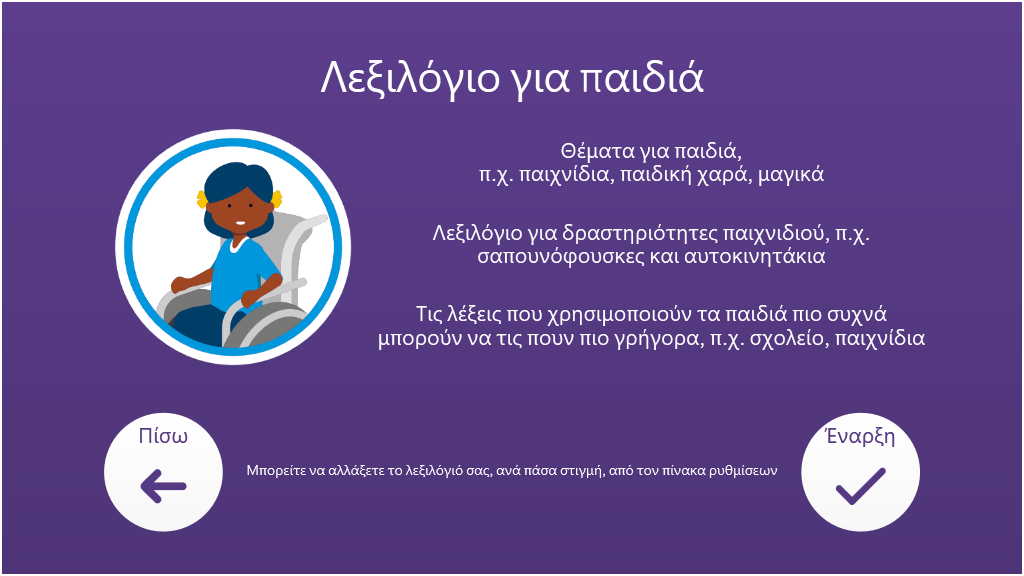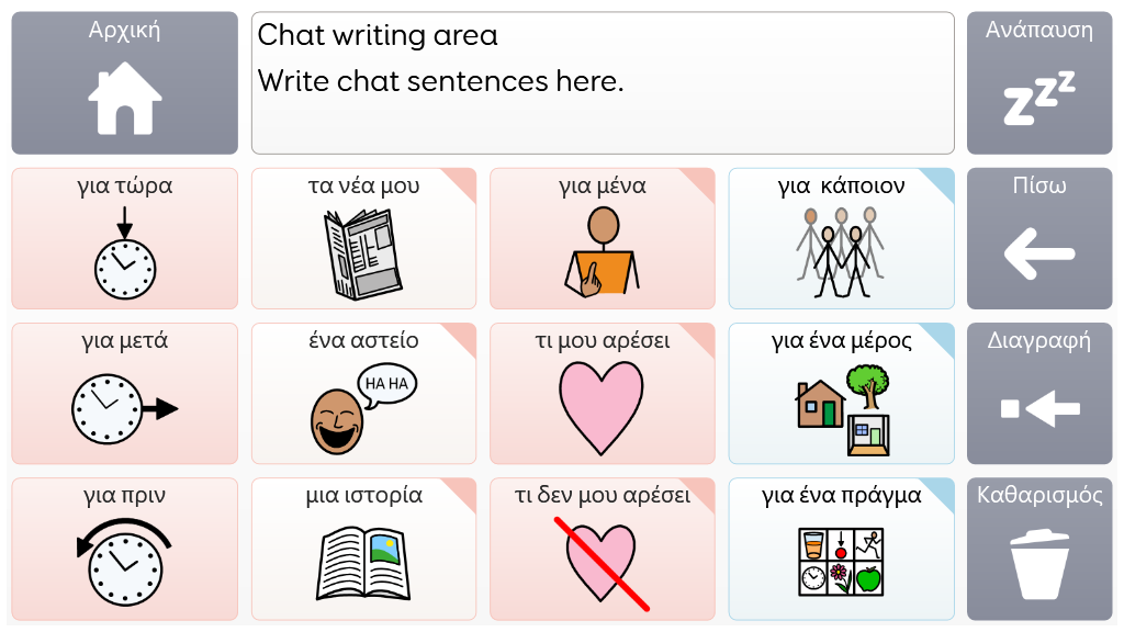 Το Voco Chat είναι ένα λεξιλόγιο συμβόλων που αποτελείται ένα σχετικά μικρό πλήθος κελιών, το οποίο είναι σχεδιασμένο έτσι ώστε να επιτρέπει στους χρήστες να επικοινωνούν σε ένα ευρύ φάσμα περιπτώσεων. Οι διαδρομές των μηνυμάτων, με τα ενσωματωμένα άλματα και το προσεκτικά επιλεγμένο λεξιλόγιο, παρέχουν μια υποστηριζόμενη προσέγγιση της γλώσσας. Το πολύπλεγμα περιλαμβάνει υλικό που υποστηρίζει την επικοινωνία και την συναισθηματική ευημερία, με εφαρμογές όπως το Symoji και την Κάμερα, υποβοηθώντας την αλληλεπίδραση και τη συμμετοχή. Το Voco Chat είναι κατάλληλο για όσους χρειάζονται μεγαλύτερου μεγέθους κελιά και μπορεί να χρησιμοποιηθεί με αφή, βλέμμα, δείκτη και διακόπτες. Περιλαμβάνονται ακουστικές υποδείξεις τόσο για τις στήλες όσο και για τα μεμονωμένα κελιά. Όταν ανοίξετε το Voco Chat για πρώτη φορά, μπορείτε να επιλέξετε τη λειτουργία είτε για "Παιδί" είτε για "Έφηβοι και ενήλικες", προκειμένου να επιλέξετε το πιο κατάλληλο λεξιλόγιο για τον χρήστη. v1.05