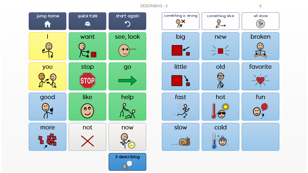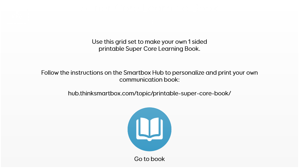 Super Core Printable Books are grid sets based on the Super Core language system, designed to be personalized within Grid software. Once printed, cut out and assembled, they form paper-based communication books which can be used anytime, anywhere. Printable books contain consistent core words, language for daily and play activities and short phrases. Find guidance on personalizing and printing them on the Smartbox Hub. This grid set contains vocabulary tailored to children and forms a single sided book with 4x6 cells, that is quicker to assemble and easier to personalize. Note: Ensure you are using Grid version 100 or above. v 1.03