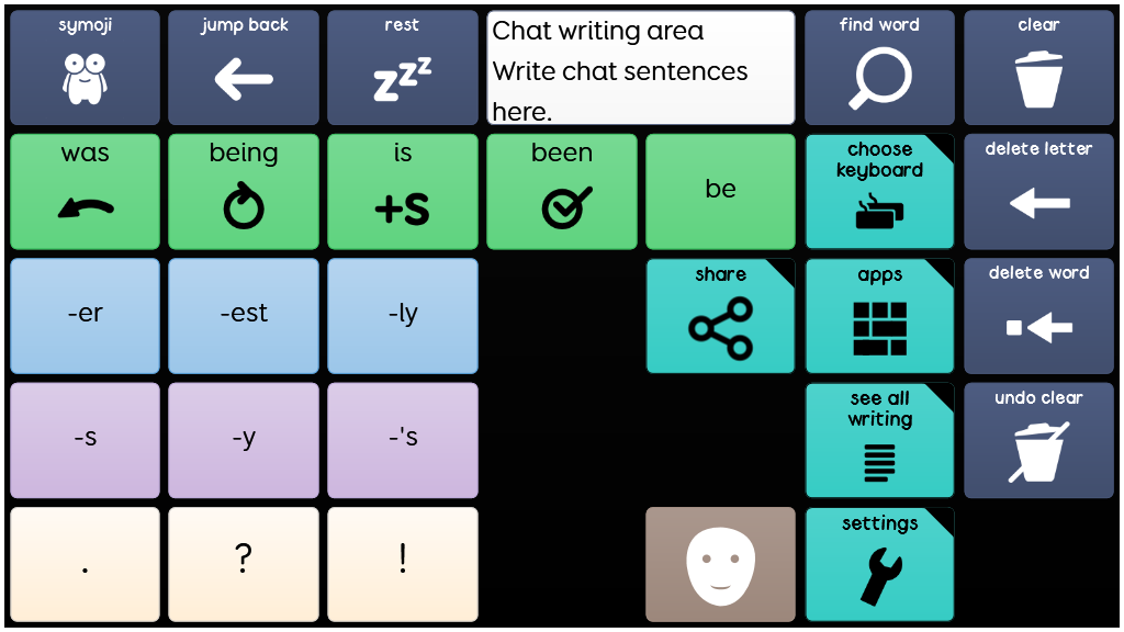 Super Core 30 has the exact same vocabulary as Super Core 50, and is available for users who need fewer and larger cells on each grid. Words may take more selections to get to, but they will be easier for some users to select. This easy-to-use core vocabulary is designed to help early AAC users experience success with symbol communication. It combines a consistent core vocabulary with context specific language, focusing on daily routines and play activities to keep communication meaningful and motivating! Super Core is designed to provide functional yet simple vocabulary, that supports language, learning and literacy development. It is grounded in research, and was developed by Smartbox Speech and Language Therapist Daisy Clay. v2.2