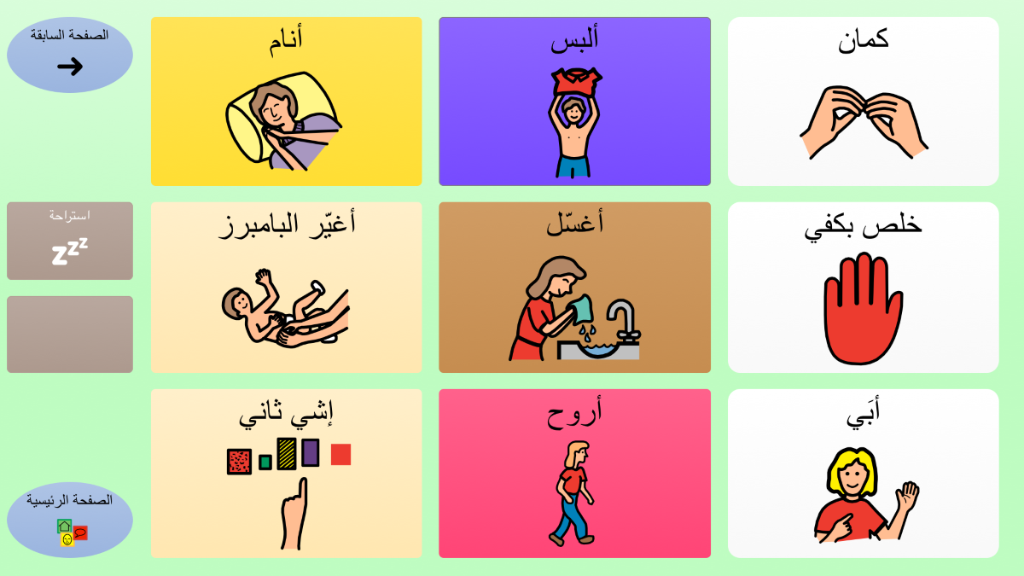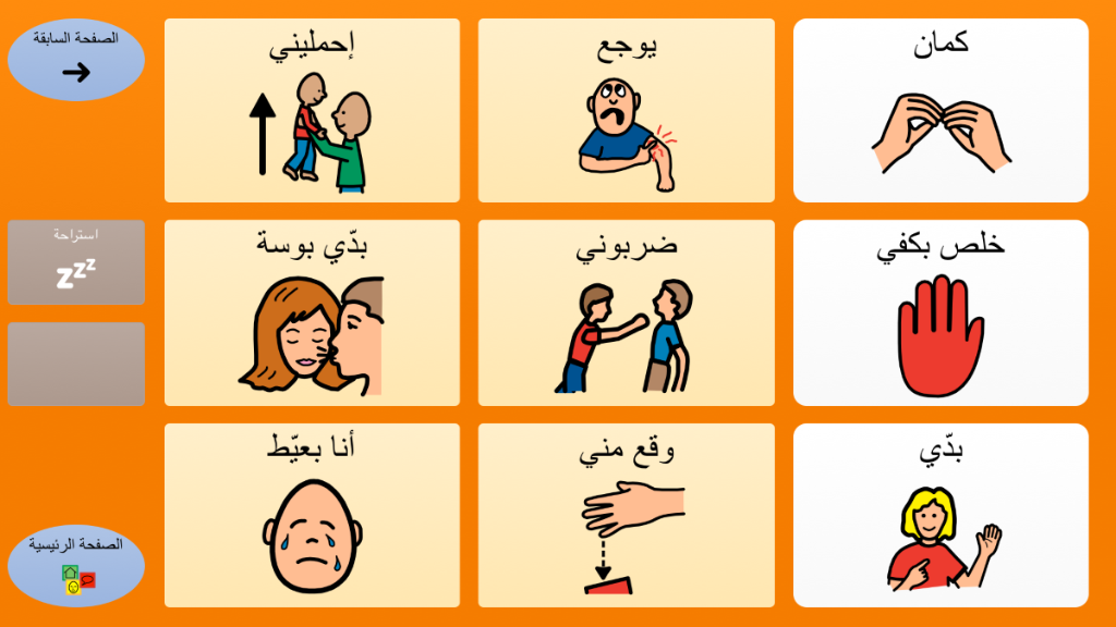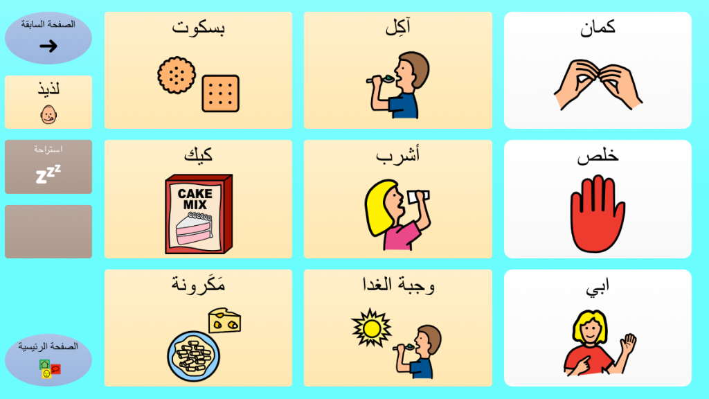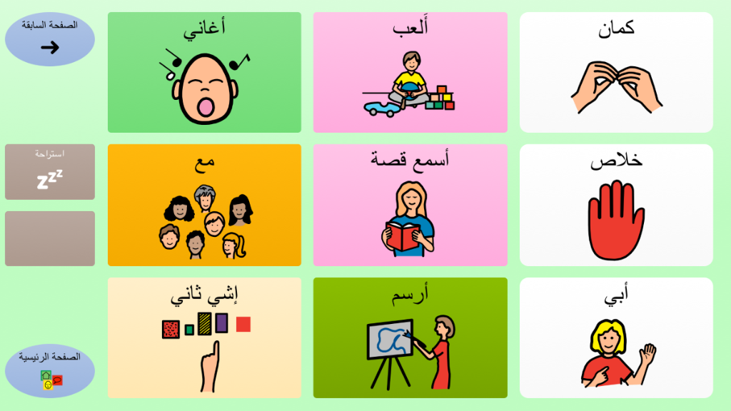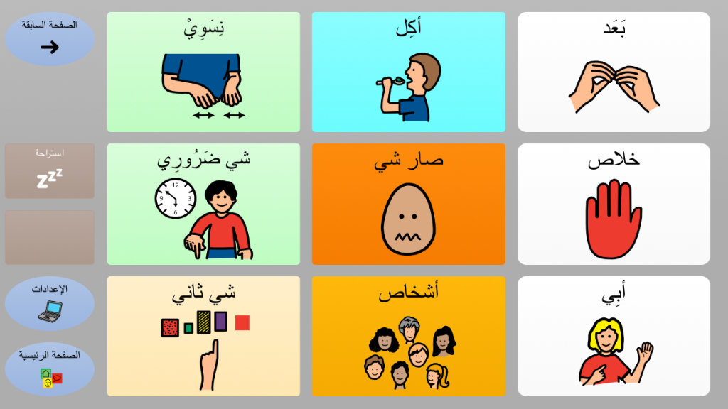 برنامج أولي وبسيط مع تسعة رموز على كل لوحة ، والتي من خلالها المُستخدم (الطفل) يتعرف على إستخدام الحاسوب لأغراض الإتصال. يحتوي البرنامج على رسائل أساسية,مُنظمة وفقاً لنوايا التواصل والعلاقات اليومية. برنامج لوحات للمذكر ، على أساس رموز PCS.
