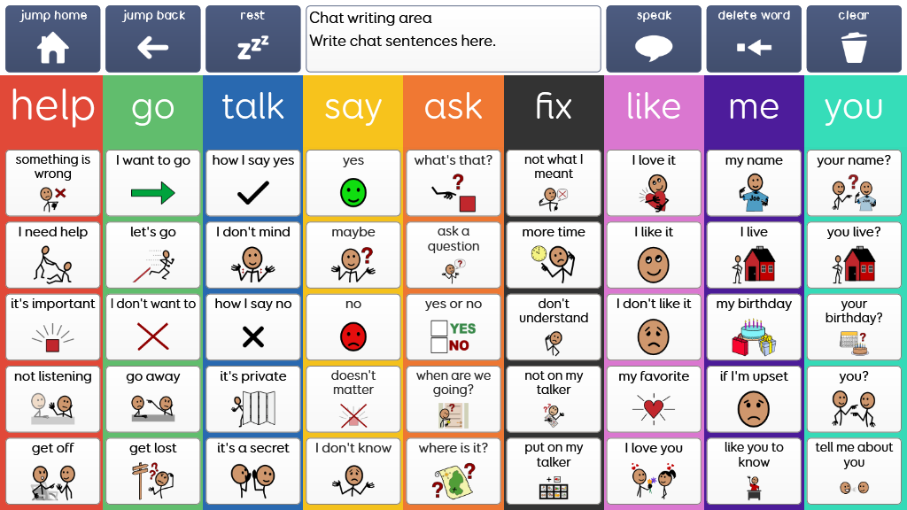 SUPER CORE 50 Super Core is an easy-to-use core vocabulary designed to help early AAC users experience success with symbol communication. It combines a consistent core vocabulary with context specific language, focusing on daily routines and play activities to keep communication meaningful and motivating! Super Core is designed to provide functional yet simple vocabulary, that supports language, learning and literacy development. It is grounded in research, and was developed by Smartbox Speech and Language Therapist Daisy Clay. Super Core is available in PCS or Symbol Stix, and is also available with larger cells (Super Core 30). v2.2