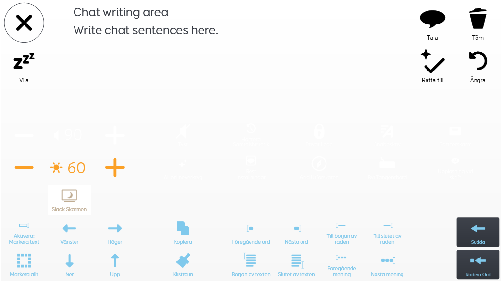 En textbaserad kommunikationsanpassning optimerad för pek. Möjlighet att snabbt spara och använda egna fraser, ord prediktion, historik på tidigare skrivna meddelanden och röstbank med egna inspelade ljud. v2.97
