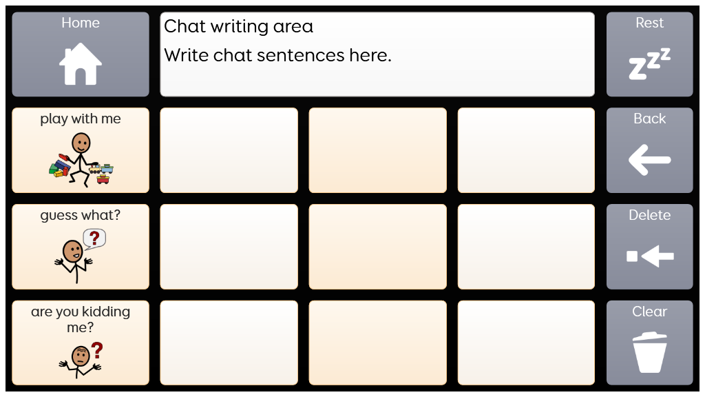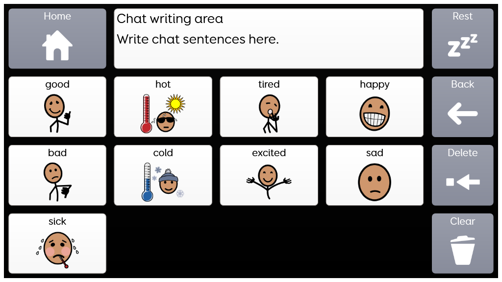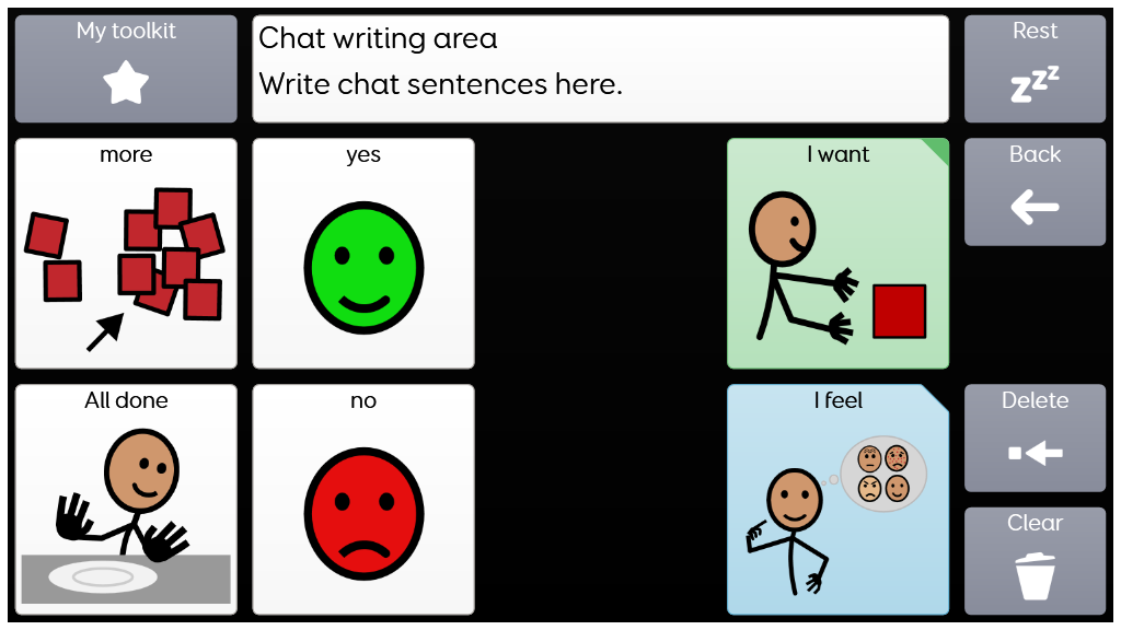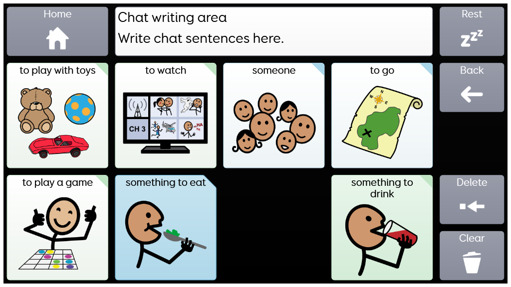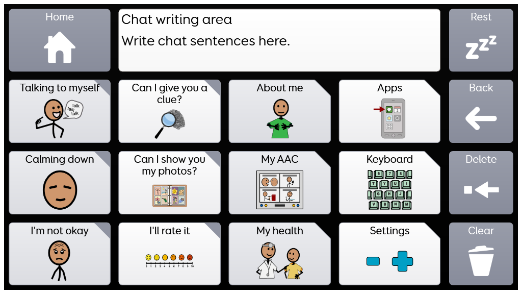 Voco Chat is a low-cell count symbol vocabulary, designed to enable users to communicate for a wide range of reasons. Message pathways, with built-in jumps and carefully selected vocabulary, provide a supported approach to language. The grid set includes resources for supporting communication and emotional wellbeing, with apps such as Symoji and Camera to support interaction and engagement. Voco Chat is suitable for anyone who needs larger cells, and can be used with touch, eye gaze, pointer and switches. Auditory prompts are included for both columns and individual cells. When you add Voco Chat for the first time, you can select either ‘Child’ or ‘Teen and Adult’ in order to choose the most appropriate vocabulary for the user. v1.05