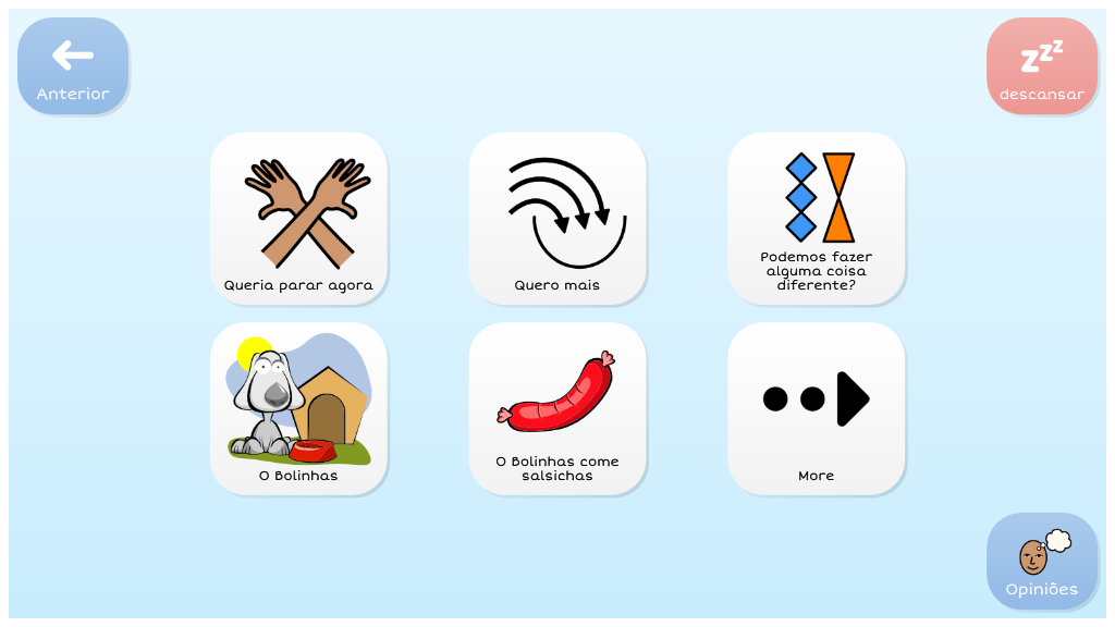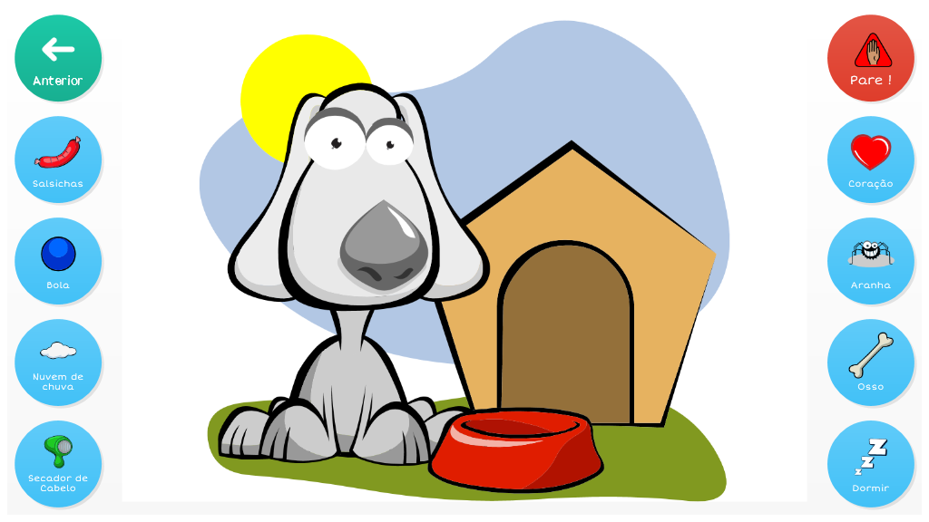 Vê como o Bolinhas reage à dar-lhe uma bola ou osso. Ajuda a desenvolver competências de causa-efeito. Estas atividades foram desenhadas para motivar e serem divertidas. As crianças podem comentar sobre as atividades e começar a introduzir a comunicação aumentativa.