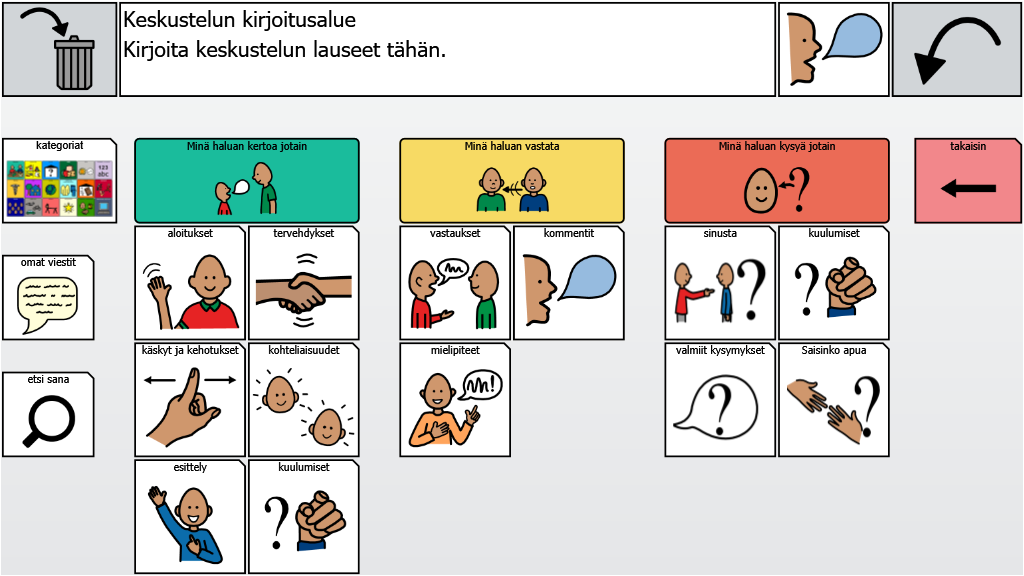 Valteri Ruskiksen toteuttamat AACi-taulustot ovat AACi-kansioiden käyttöperiaatteita ja visuaalista ilmettä mukailevia helppokäyttöisiä taivuttavia sisältöjä. AACi:t Hyödyntävät DialoQ-taivuttimen ominaisuuksia, jolla yksittäiset sanat muodostavat sujuvan suomenkielisen lauseen. Taulusto on suojattu lisenssillä, ja vaatii lisenssiavaimen toimiakseen. Voit kuitenkin ladata ja kokeilla sisältöä veloituksetta ilman lisenssiavainta 60 vuorokauden ajan. Lisenssiavaimen hankinta ja tiedustelut aaci@valteri.fi