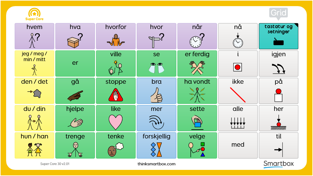 En utskriftbar tosidig kommunikasjonstavle utviklet til å benyttes som et supplement til Super Core 30. På den måten kan man ha lett tilgang på viktige ord og få uttrykt seg hele tiden, som f.eks ute i ruskete vær, i svømmehall m.m. Den består av 2 sider der første siden innehar de fleste ordene fra startsiden i Super Core 30. I tillegg har den utvidet vokabular for å få tilgang til de mest funksjonelle og mest brukte kjerneordene. Side 2 består av bokstaver, tall og nyttige fraser som alle er hentet fra Super Core 30. v2.01