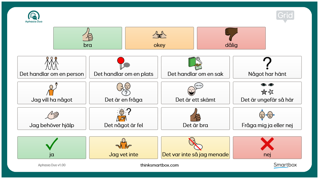 A grid set designed to complement our Aphasia Duo vocabulary. Print double sided and laminate for a portable version of chat help and keyboard. v1.00