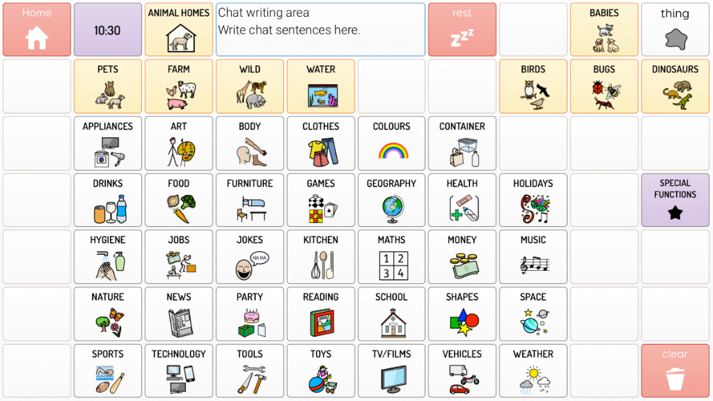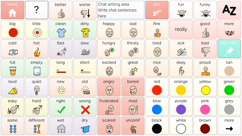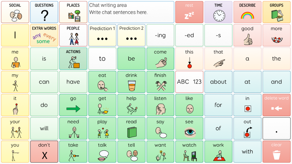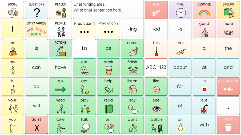 A simplified version of Word Power 100 by Nancy Inman, with a reduced cell count. Suitable for those who are unable to physically access the cell count of Word Power 100, but for those who would benefit from a core vocabulary approach, supported by principles of motor planning. v1.04