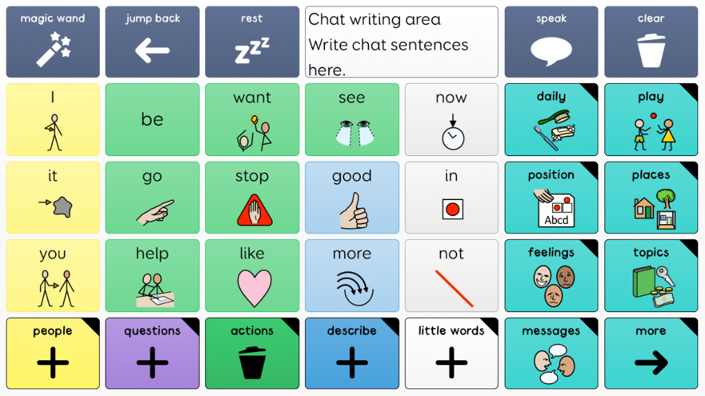 Super Core 30 has the exact same vocabulary as Super Core 50, and is available for users who need fewer and larger cells on each grid. Words may take more selections to get to, but they will be easier for some users to select. This easy-to-use core vocabulary is designed to help early AAC users experience success with symbol communication. It combines a consistent core vocabulary with context specific language, focusing on daily routines and play activities to keep communication meaningful and motivating! Super Core is designed to provide functional yet simple vocabulary, that supports language, learning and literacy development. It is grounded in research, and was developed by Smartbox Speech and Language Therapist Daisy Clay. v2.09