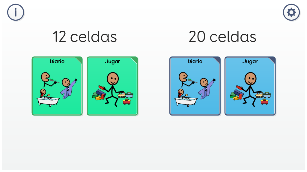 Incluyen todo el vocabulario de actividades diarias, de ocio y de juego de Super Core junto con un vocabulario núcleo simplificado con menos celdas, de 12 y 20 celdas.