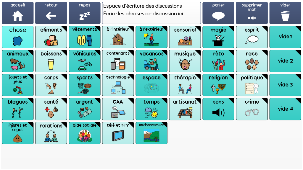 Super Core est un vocabulaire de base facile à utiliser, créé pour la réussite des utilisateurs débutants en CAA symbolique. Il combine un vocabulaire de base cohérent avec un vocabulaire spécifique contextuel, en se focalisant sur les routines quotidiennes et les activités ludiques pour garder la communication pleine de sens et motivante! v.2.06