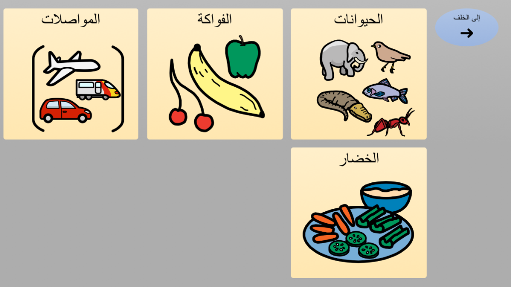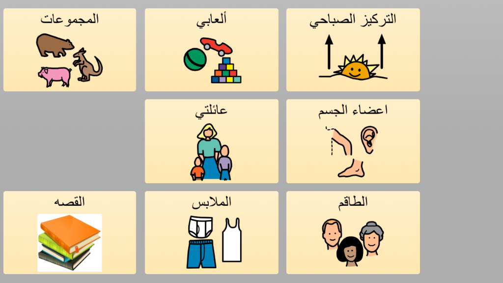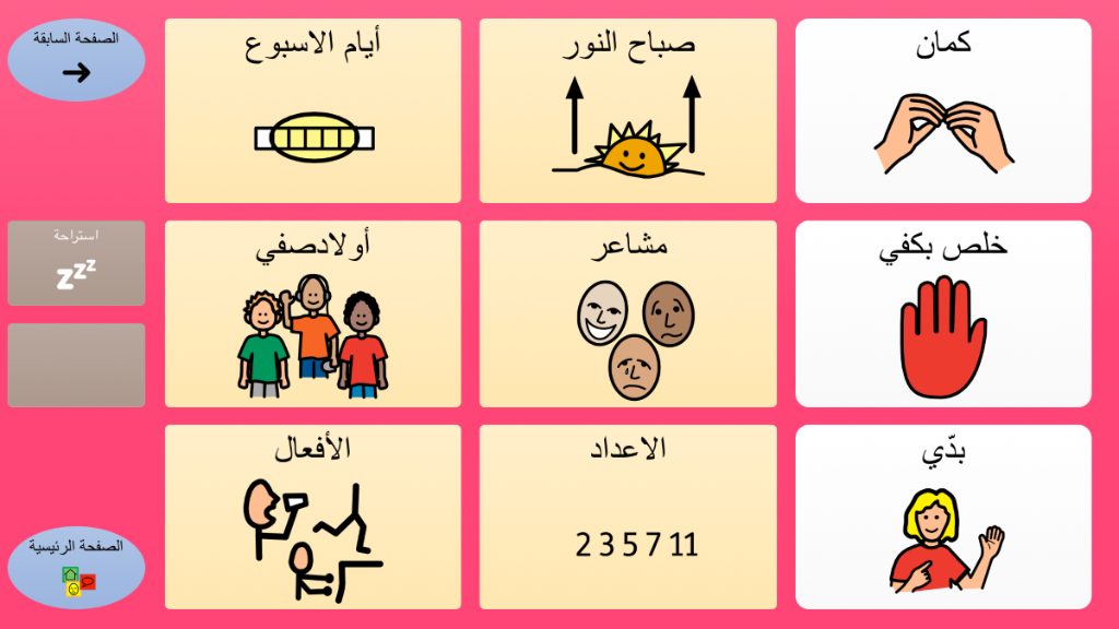 مدرسة الأمل للتربية الخاصة برنامج أولي وبسيط مع تسعة رموز على كل لوحة ، والتي من خلالها المُستخدم (الطفل) يتعرف على إستخدام الحاسوب لأغراض الإتصال. يحتوي البرنامج على رسائل أساسية,مُنظمة وفقاً لنوايا التواصل والعلاقات اليومية. برنامج لوحات للمذكر ، على أساس رموز PCS.