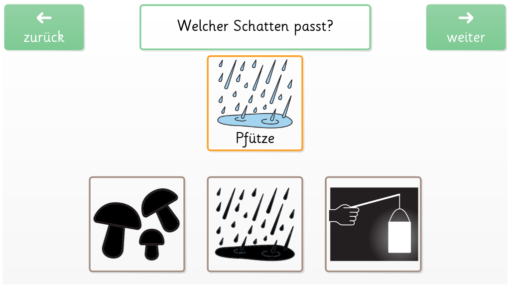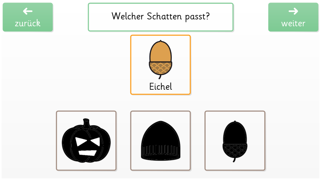 Der Herbst naht und wir freuen uns auf die Farbenpracht der bunten Blätter. Aber nicht nur die herbstlich verfärbten Blätter auch Kastanien, Kürbisse und Pfützen sind charakteristisch für die kommende Jahreszeit. In unserem Herbstquiz gilt es, ihnen den passenden Schatten zuzuordnen.