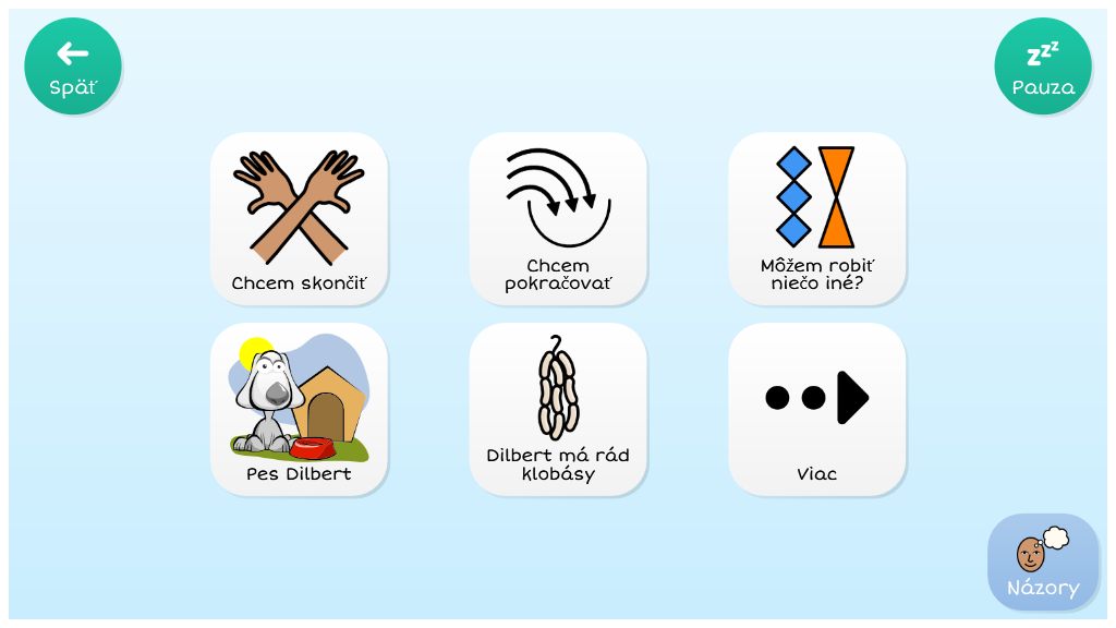 Sleduj, čo urobí pes Dilbert, keď mu dáš salámu, loptu, kosť... alebo pavúka! Táto sada mriežok pomáha rozvíjať pochopenie príčiny a následku. Aktivity interaktívneho učenia sú vytvorené tak, aby pri výučbe kľúčových zručností motivovali a prinášali zábavu. Súčasťou sady sú tiež mriežky určené ku konverzácii, ktoré umožňujú rozhovor o aktivite a pomáhajú tak k rozvoju alternatívnej komunikácie. v.4.25