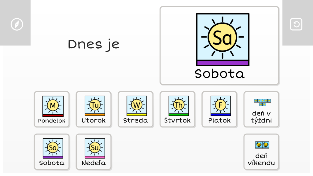 A simple grid to be used at the start of the day. Complete the sentence 'Today is...' by selecting the day of the week.