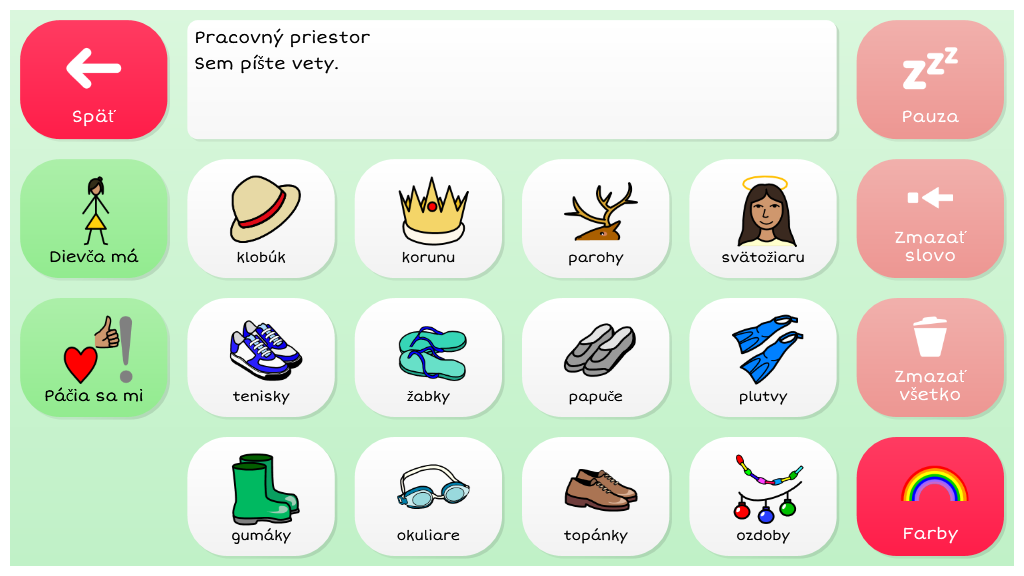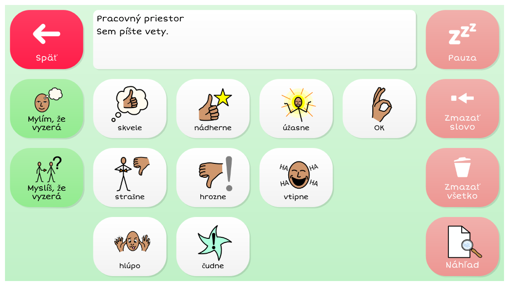 Súčasťou sady sú tiež mriežky určené ku konverzácii, ktoré umožňujú rozhovor o aktivite a pomáhajú tak k rozvoju alternatívnej komunikácie.
