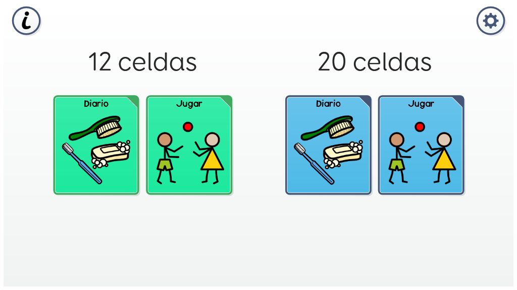 Incluyen todo el vocabulario de actividades diarias, de ocio y de juego de Super Core junto con un vocabulario núcleo simplificado con menos celdas, de 12 y 20 celdas.