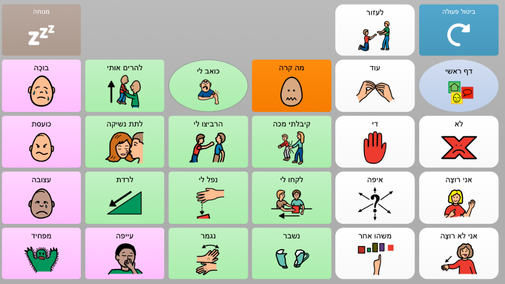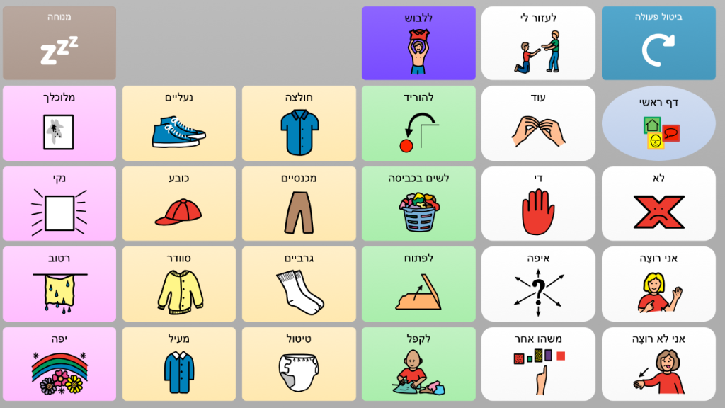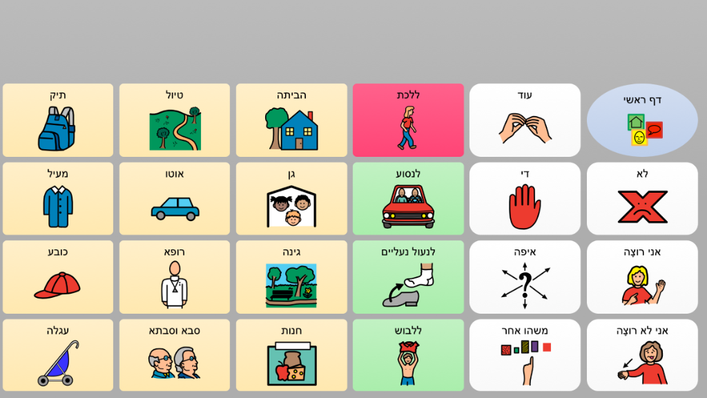 מערכת לוחות המכילה לוחות בסיסיים עבור מספר מצומצם של סיטואציות טיפוסיות מעולמו של ילד. הדף הראשי הוא דף תפריט המכיל קישורים לסיטואציות השונות. בצידו הימני של כל דף סיטואציה ישנן מילים קבועות וביתר הדף ממוקמים פעלים, שמות עצם ומילות תואר המסודרים מימין לשמאל. הלוח מכיל גם יישומי פנאי לצפיה בתמונות וסירטונים. הלוח כולל 27 דפים הכוללים כ- 300 מילים. לוחות לבת מבוססים על סמלי PCS.