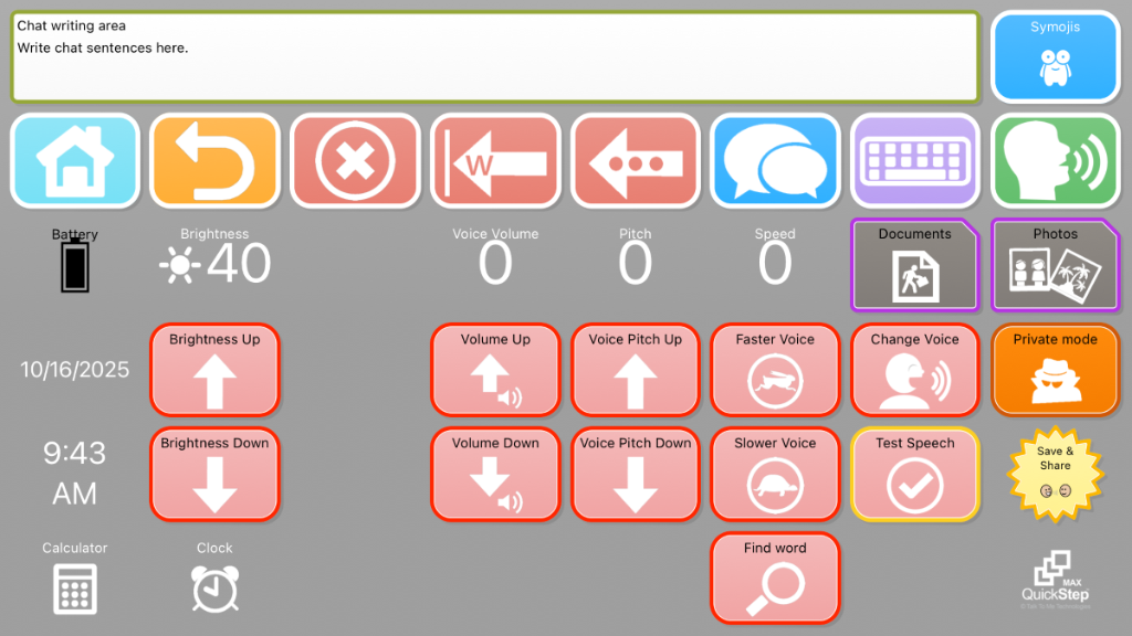 QuickStep 48 v3.0A! Share thoughts, feelings, opinions and humor with access to hundreds of phrases and fringe vocabulary. Or, produce a unique message via core words and sentence building strategies. Past, present or future, QuickStep Max allows a Context Dependent Communicator the ability to communicate with maximum independence!