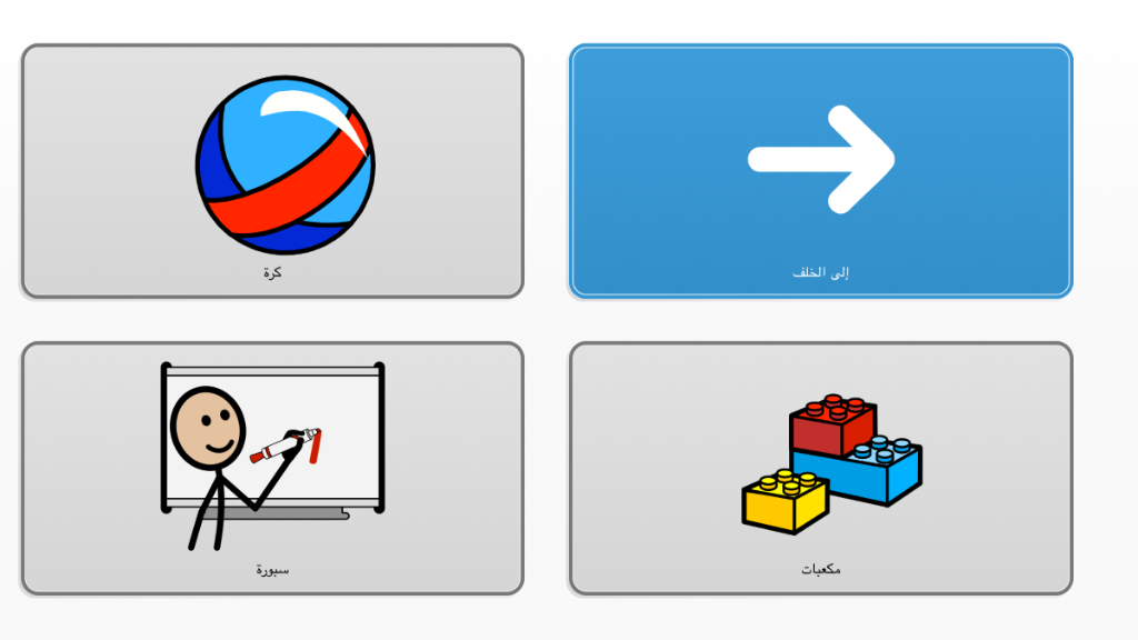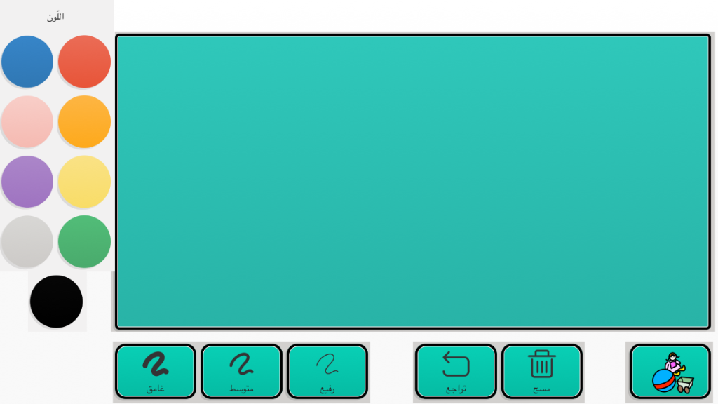 تحتوي على ٤ خلايا واحدة منها تفتح على صفحة اخرى لاختيار الألعاب ومرتبطة بتطبيق السبورة