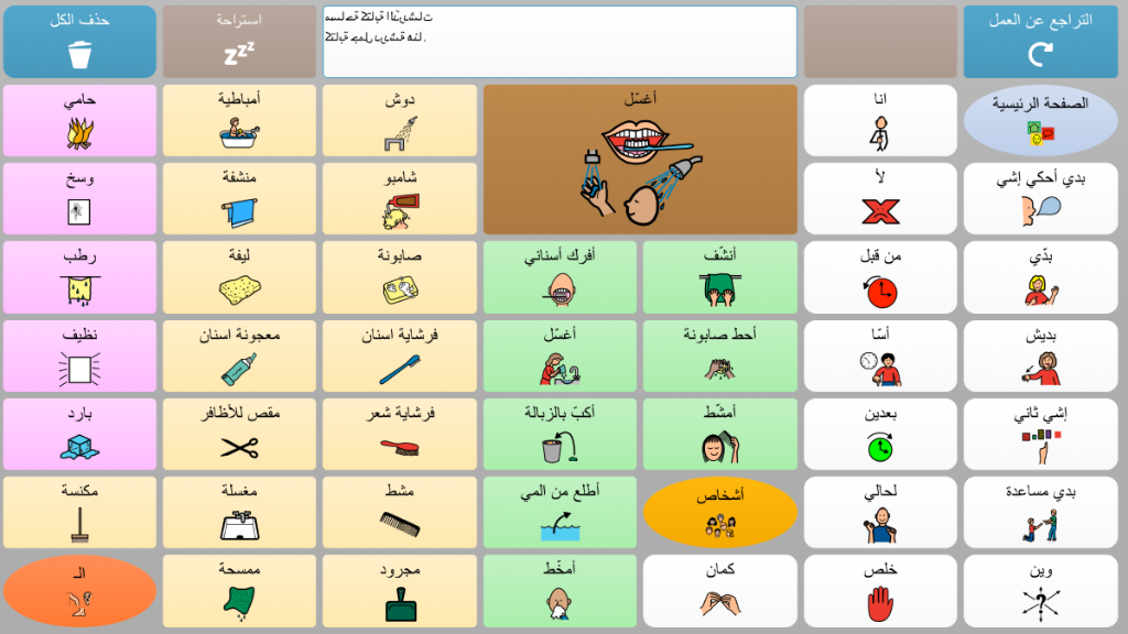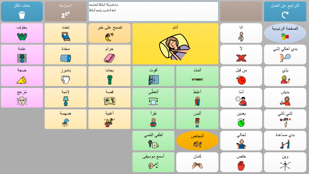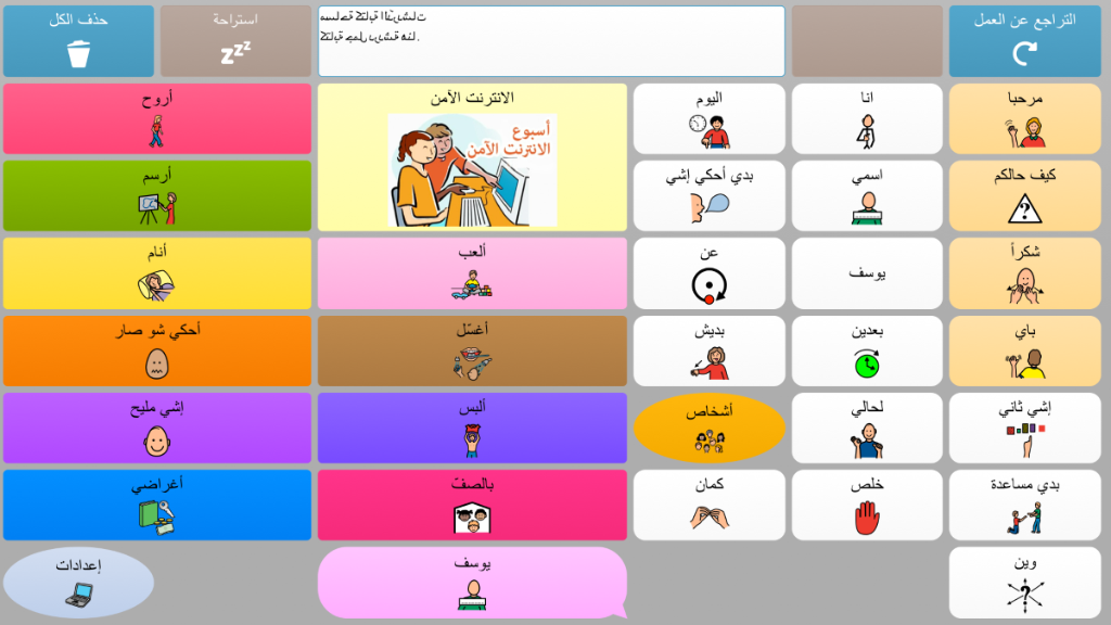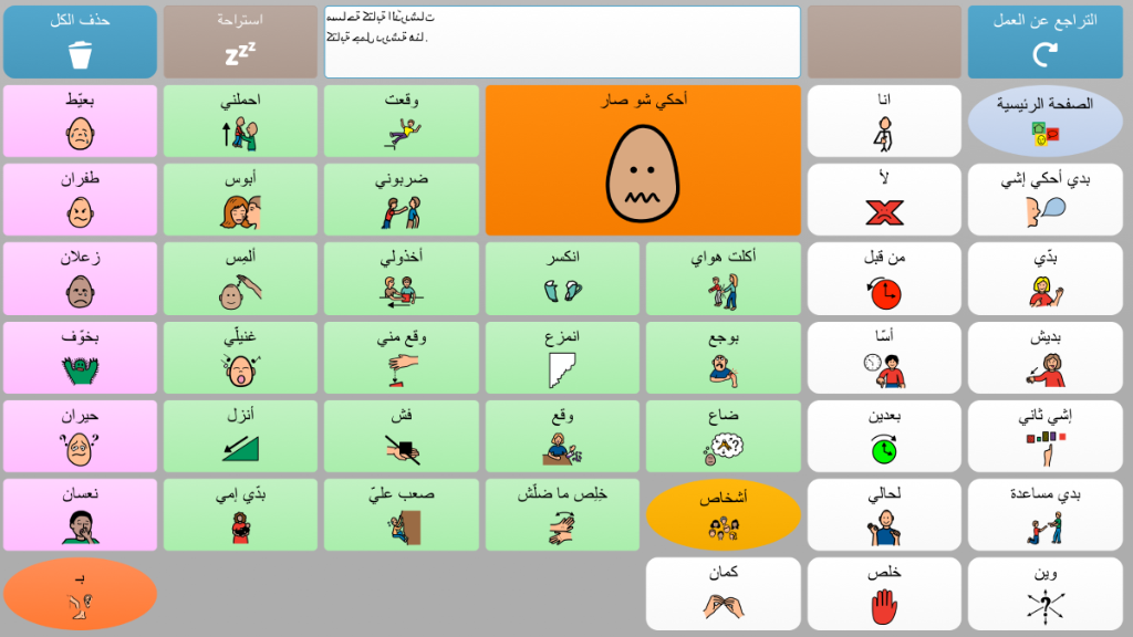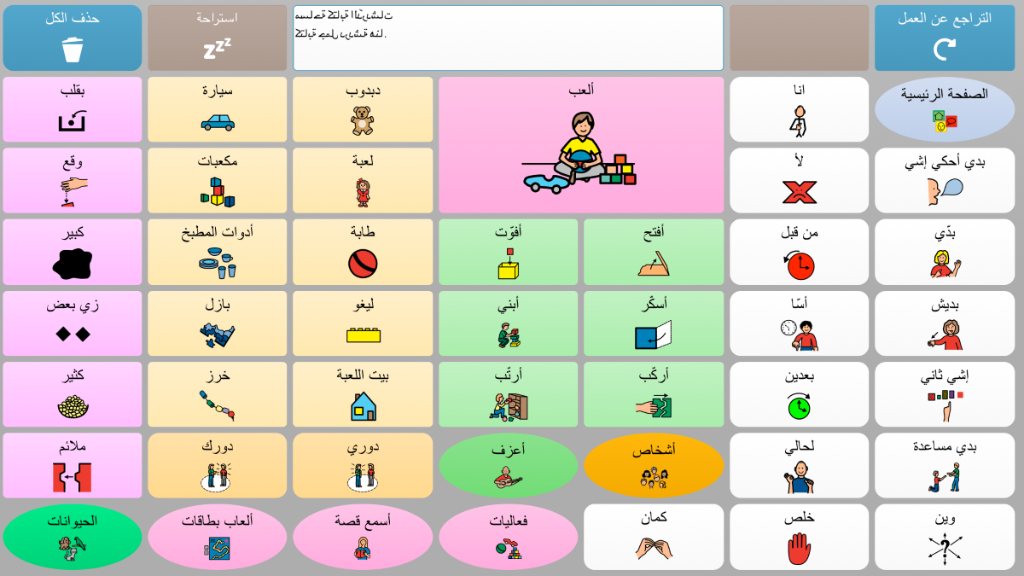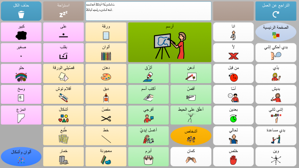 برنامج لوحات بسيط نسبياً, يحتوي على لوحات مناسبة للحالات النموذجية من عالم الطفل. اللوحة الرئيسية هي لوحة قائمة مرتبطة باللوحات والتي تحتوي كل منها على كلمات وأفعال عملية ,صفات ذو صلة بالموقف ، وتُمكن من كتابة رسالة كاملة بحد أدنى من القفزات. يحتوي البرنامج أيضًا على تطبيقات ترفيهية لعرض الصور ومقاطع الفيديو والعروض التقديمية ، فضلاً عن صفحات الأغاني (التي سيتم ملؤها) في صفحات العطلات ، وعلى صفحة عيد الميلاد. يتضمن النظام أكثر من 50 لوحة مع 600 كلمة. برنامج لوحات للمذكر ، على أساس رموز PCS وتتضمن سطر جملة في أعلى كل لوحة.