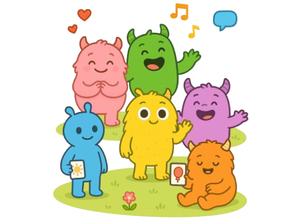 História adaptada: Os monstrinhos aprendem a comunicar. Realizado por: Andreia Damásio, terapeuta da fala Ilustrações criadas por IA