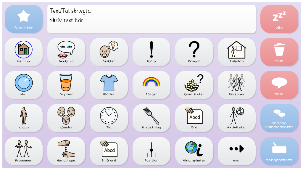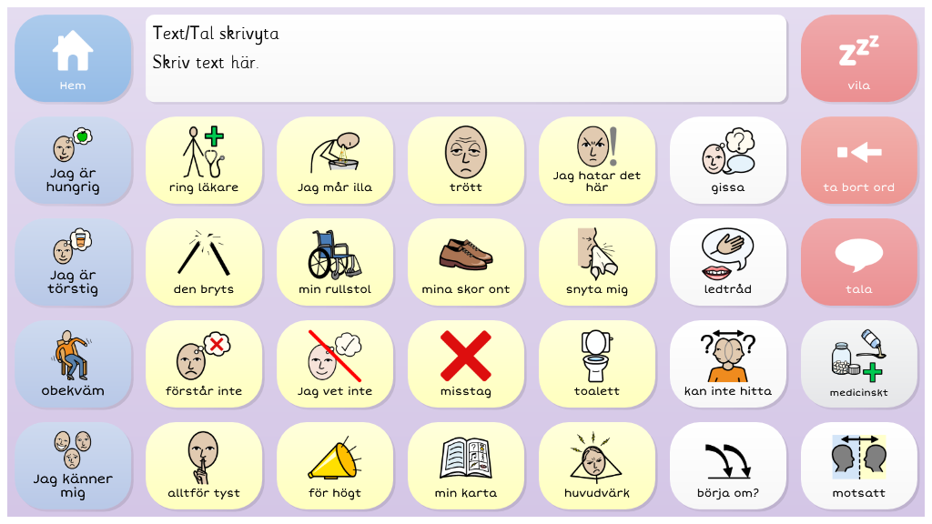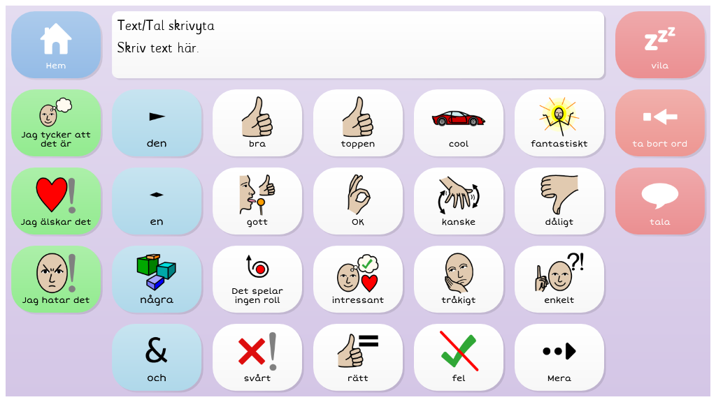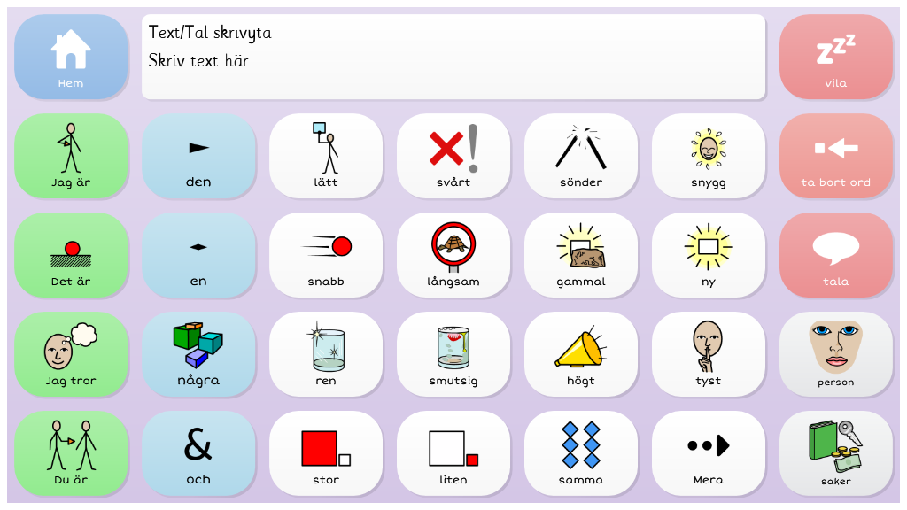 Symbol Talker B är en komplett vokabulär för en person som använder symboler för att kommunicera. Det finns sidor för att uttrycka åsikter och sidor för skola, hemma, mat och mycket mer. Innehåller fler kategorier än Symbol Talker A.